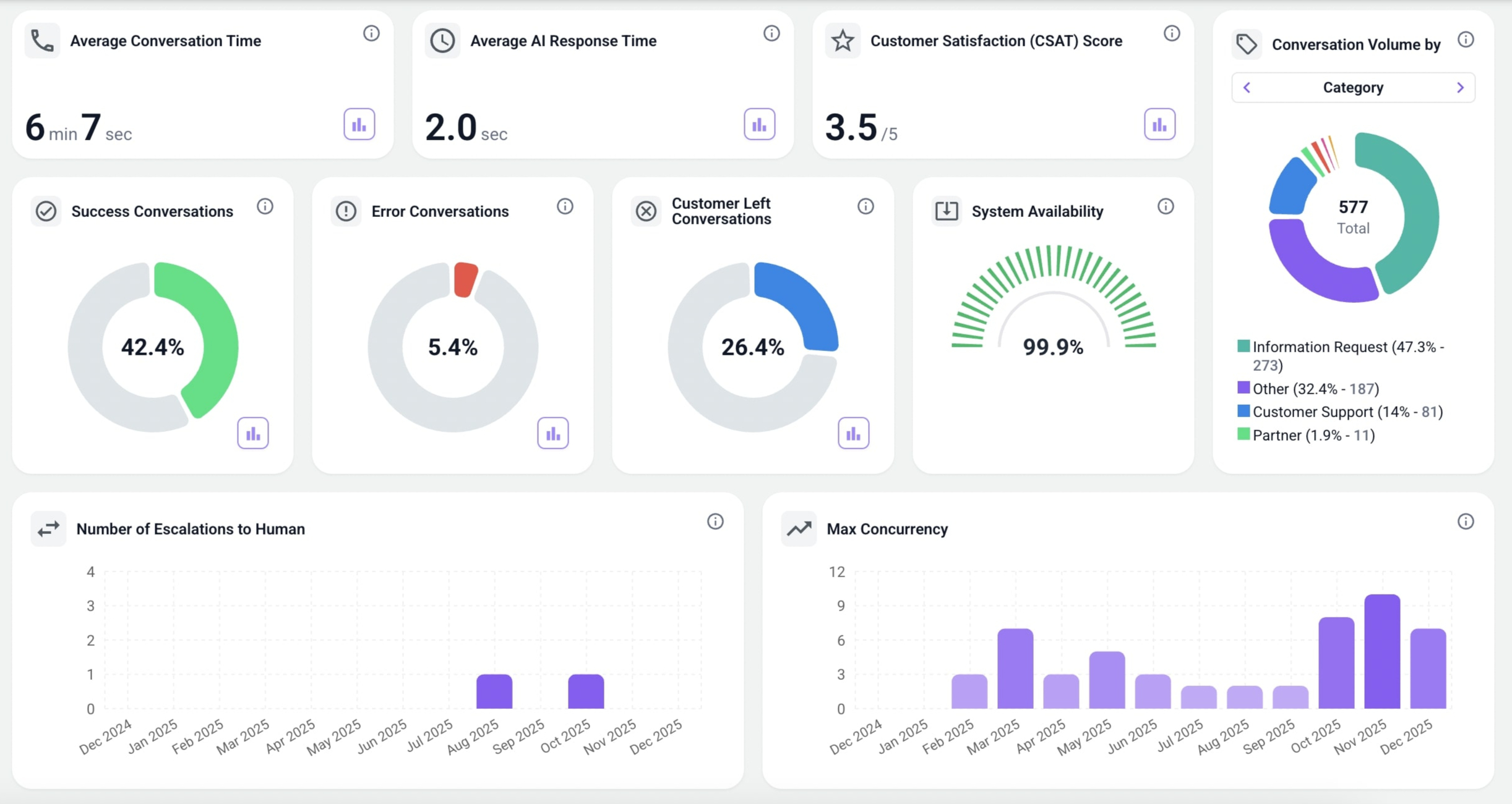 Analyze AI Agent success rate, errors, gaps, trends, inquiry topics & much more